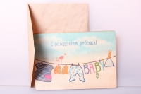 Открытка+конверт 15х10,5см - С рождением ребенка (деревянный шпон)