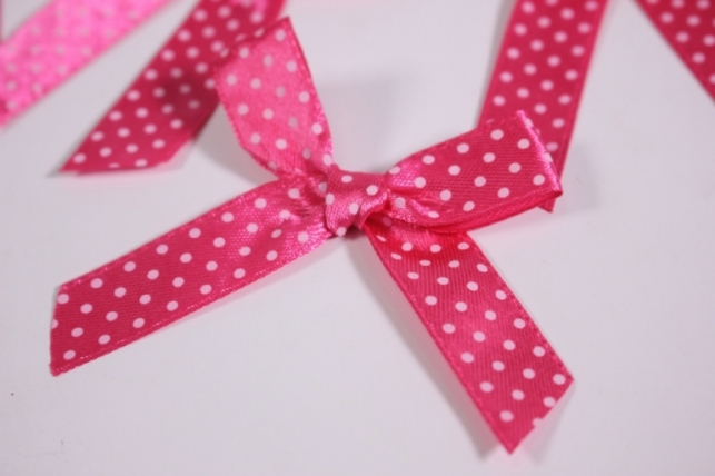 Бант атласный 6х7см малиновая точка (10шт в уп)