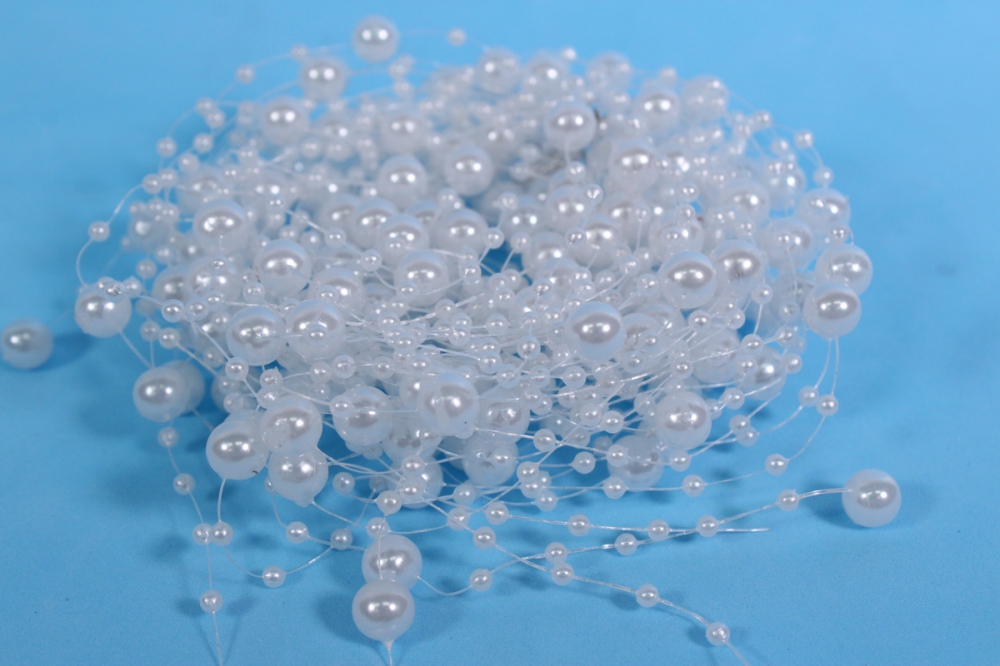 Бусины на леске белые круглые 1,2м (10шт в уп) 9895