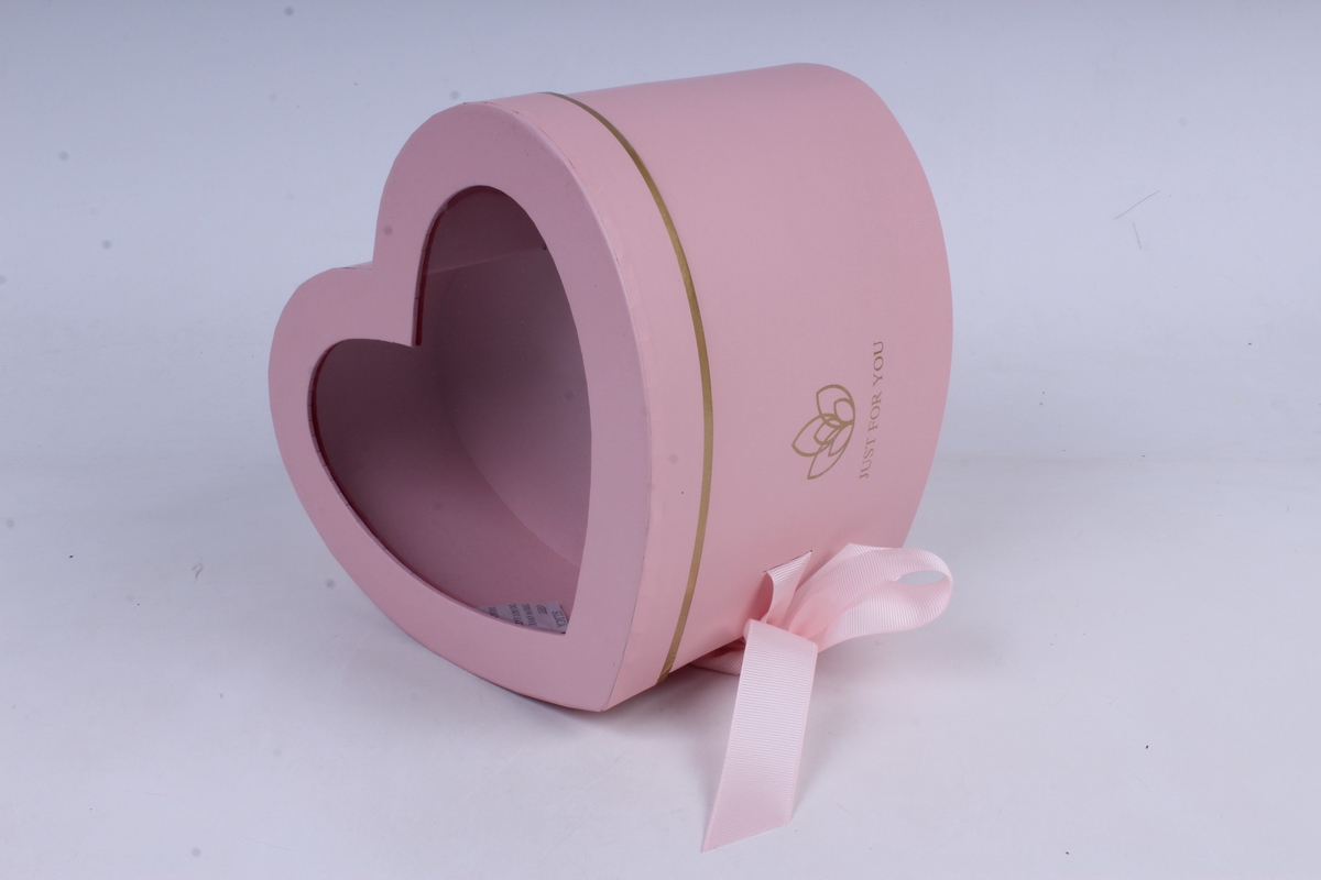Коробка подарочная одиночная 1шт- Сердце-трансформер с окном розовое В9850