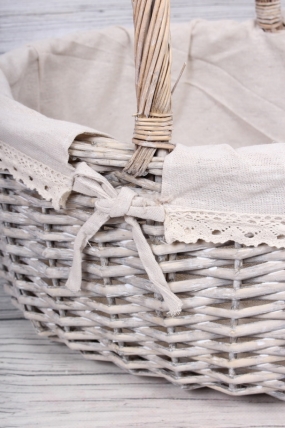 Корзина одиночная плетёная (ива) - Овал с тканевым вкладышем 37*28 см, Н= 39 см, h=19 см, КС-336