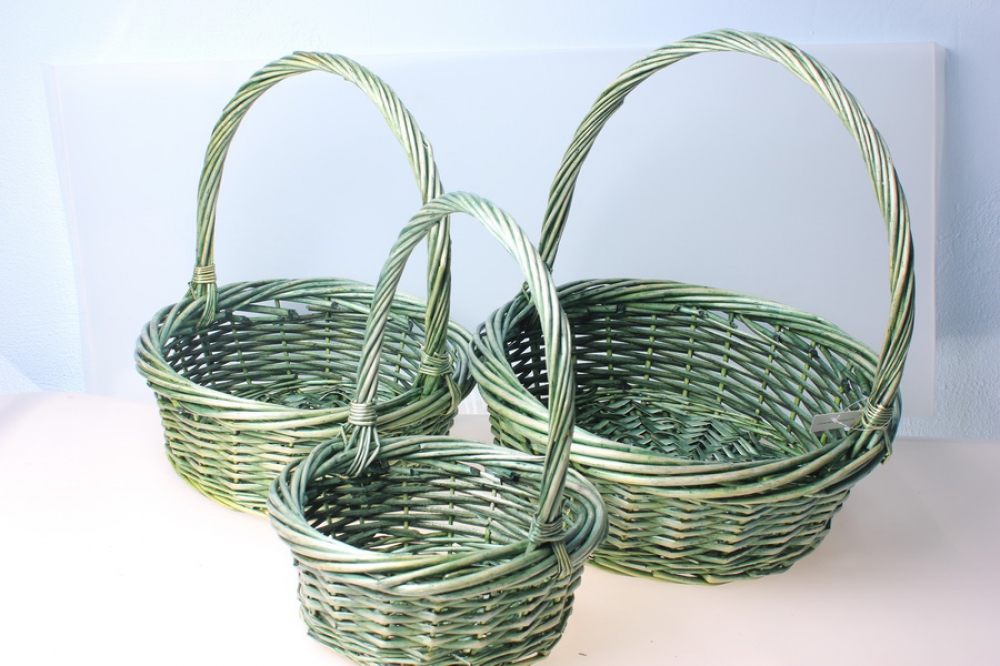 Корзины плетеные (набор из 3шт.) Круг большой зеленый (d=41/h=15/41см)
