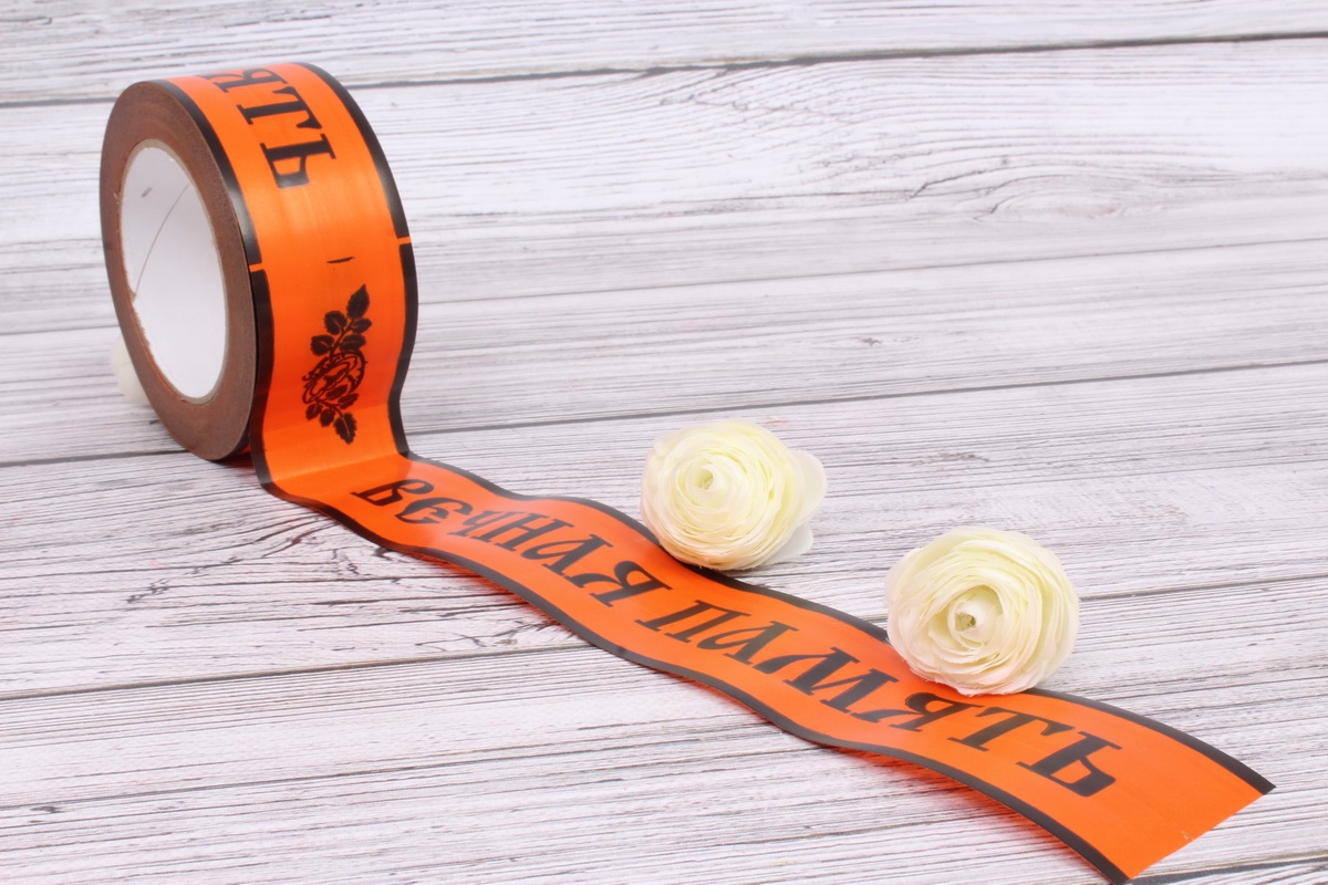 Лента простая (5см*50м) Вечная память б/к P580 ОРАНЖЕВЫЙ