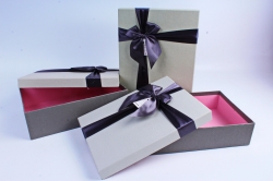 Набор подарочных коробок из 3 шт- Прямоугольник светло серая крышка/серый бант