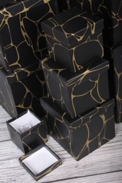 Набор подарочных коробок из 10 шт - КУБ "Чёрный Мрамор" 26,5*26,5см SY601-1874
