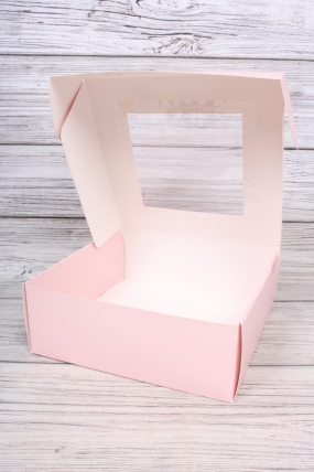Подарочная коробка с окном, 25*25*9см, розовый 8356Н