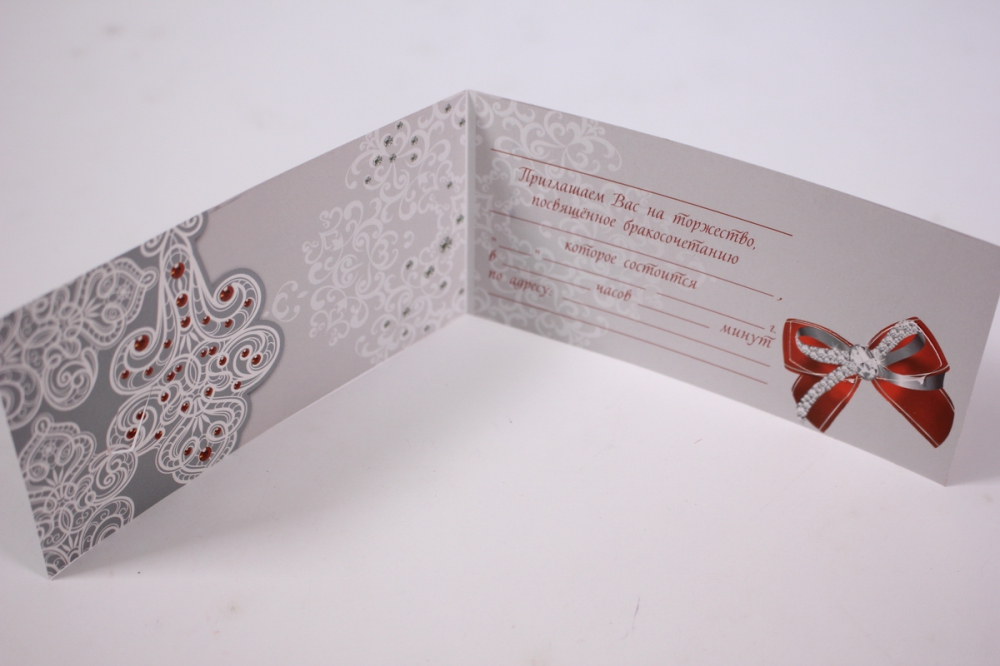 Приглашение двойное (20 шт в уп) 12*7см - красное
