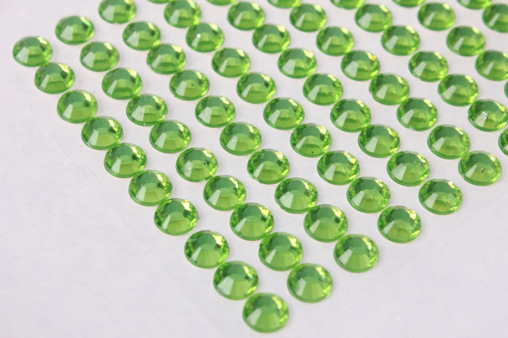Стразы Круглые граненые салатовые на липучке 8мм 140шт
