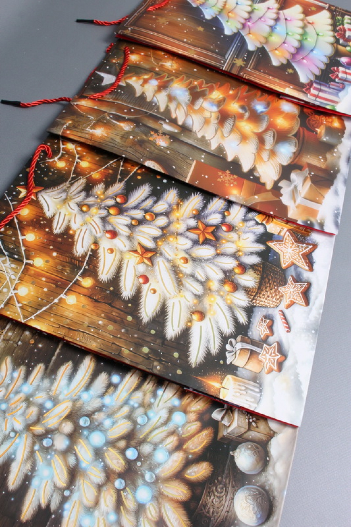 Сумка ЛЮКС Праздничные Ёлочки НГ с блестками 26*32*12 N1954